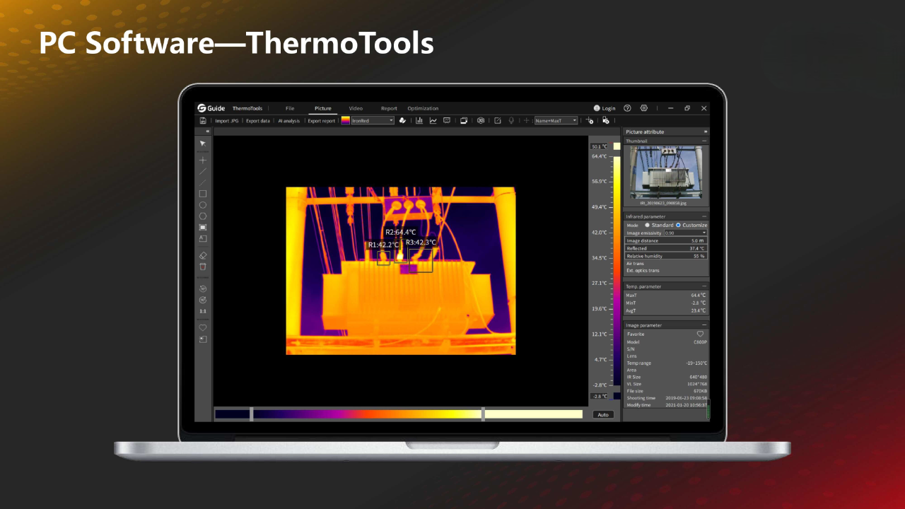 • Up to 30HZ IR video frame rate for temperature analysis by the screenshot