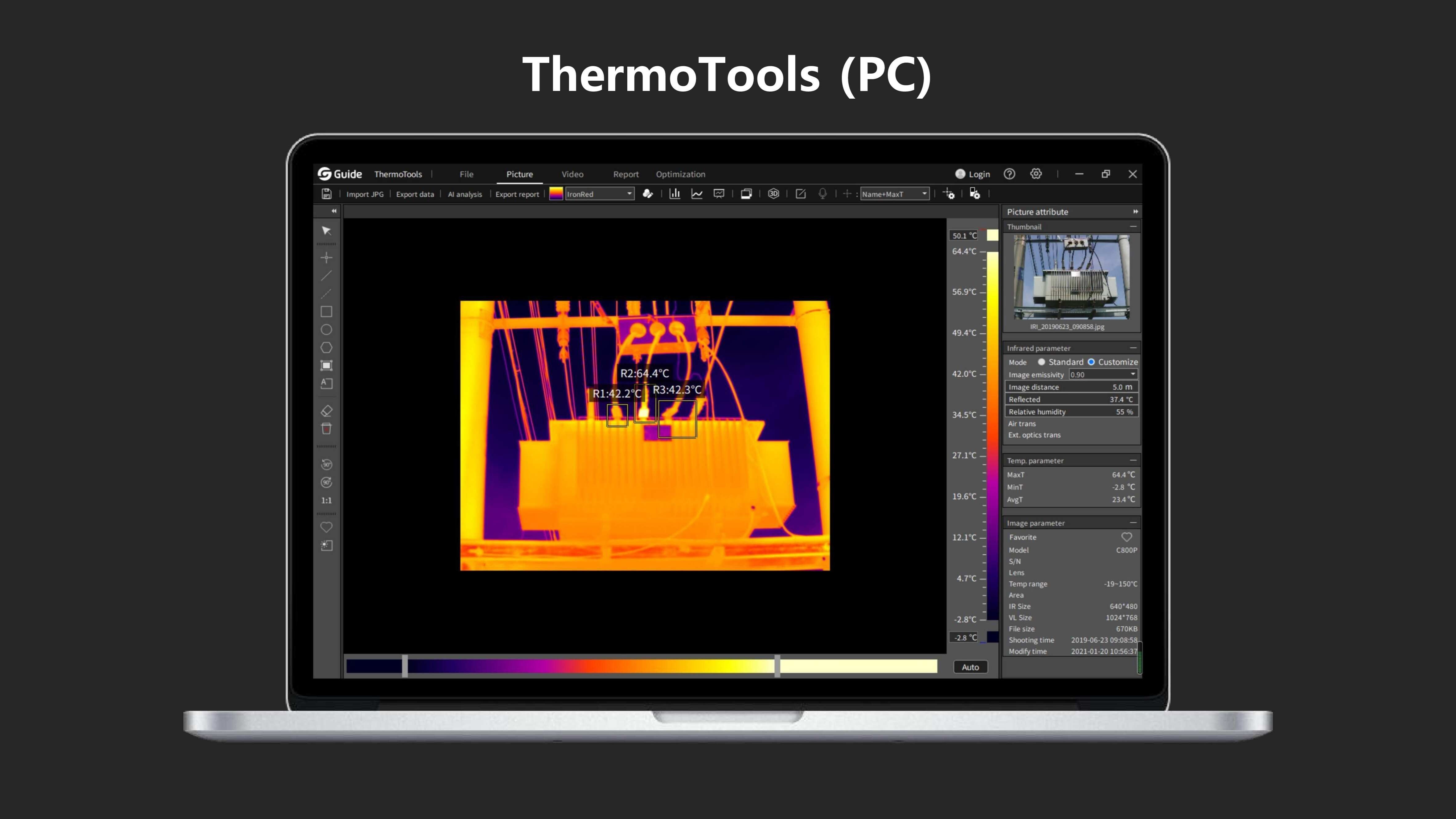• The IR, VIS, PIP and MIF reveal temperature details