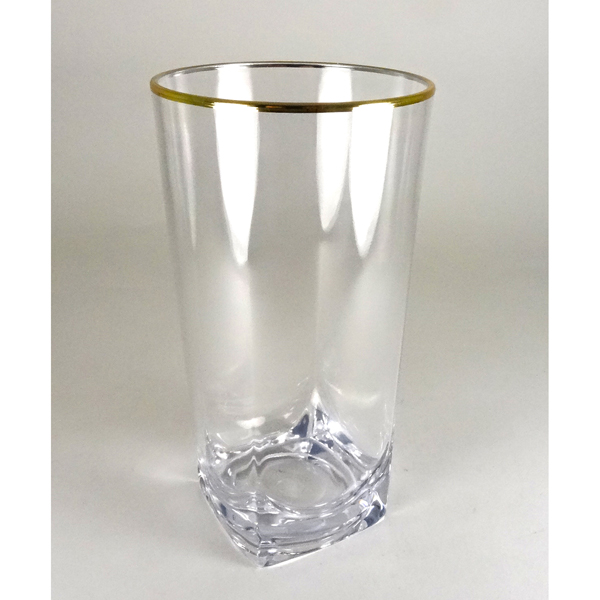 ACRYLIC TALL TUMBLER W/GOLD RIM, ROUND-SQUARE SHAPE