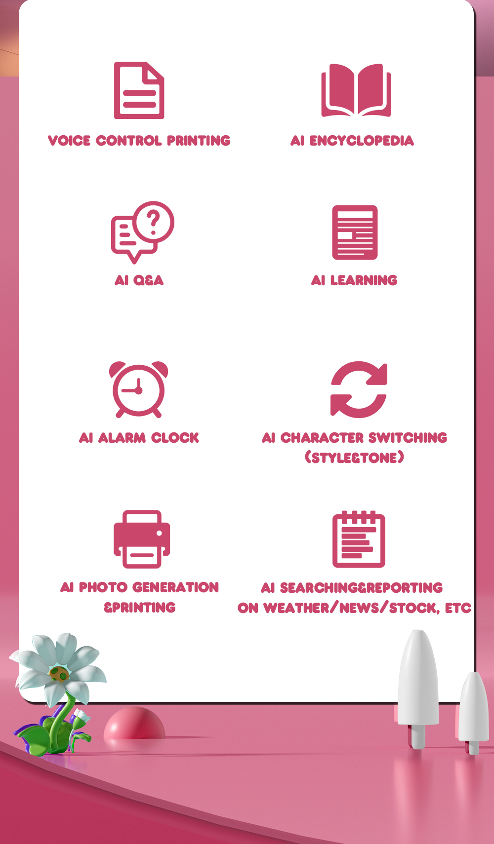 Creative Output: Transform your illustrations and notes into printed treasures—with just your voice and a simple drawing!