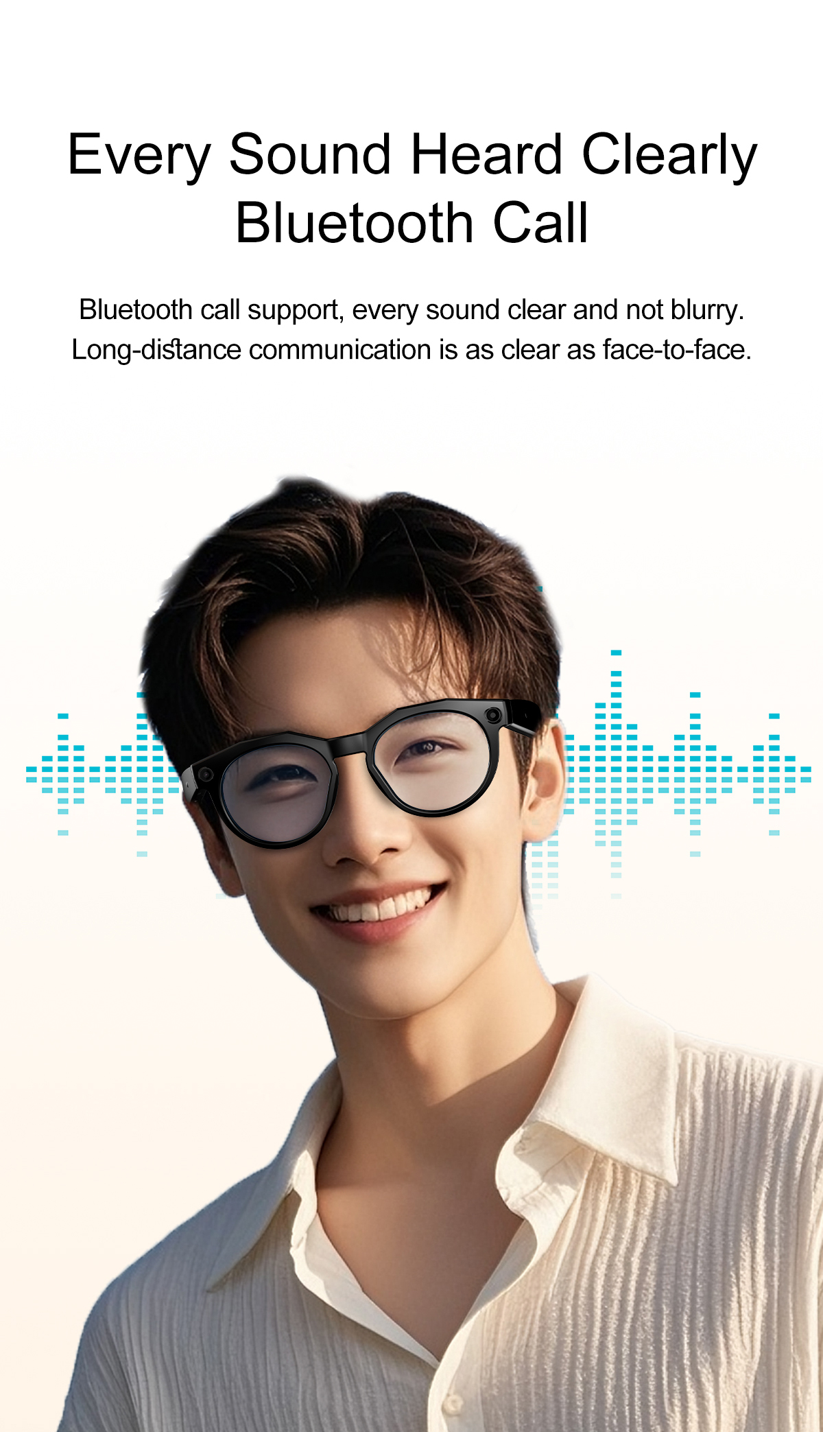 Function:Voice wake-up, music playback, music control, making and receiving calls, shooting, connecting to Chat GPT large models, viewing real objects in pictures, real-time translation, etc., shooting anti-shake, wifi transmission, dual microphone noise reduction, single-point touch, wearing detection