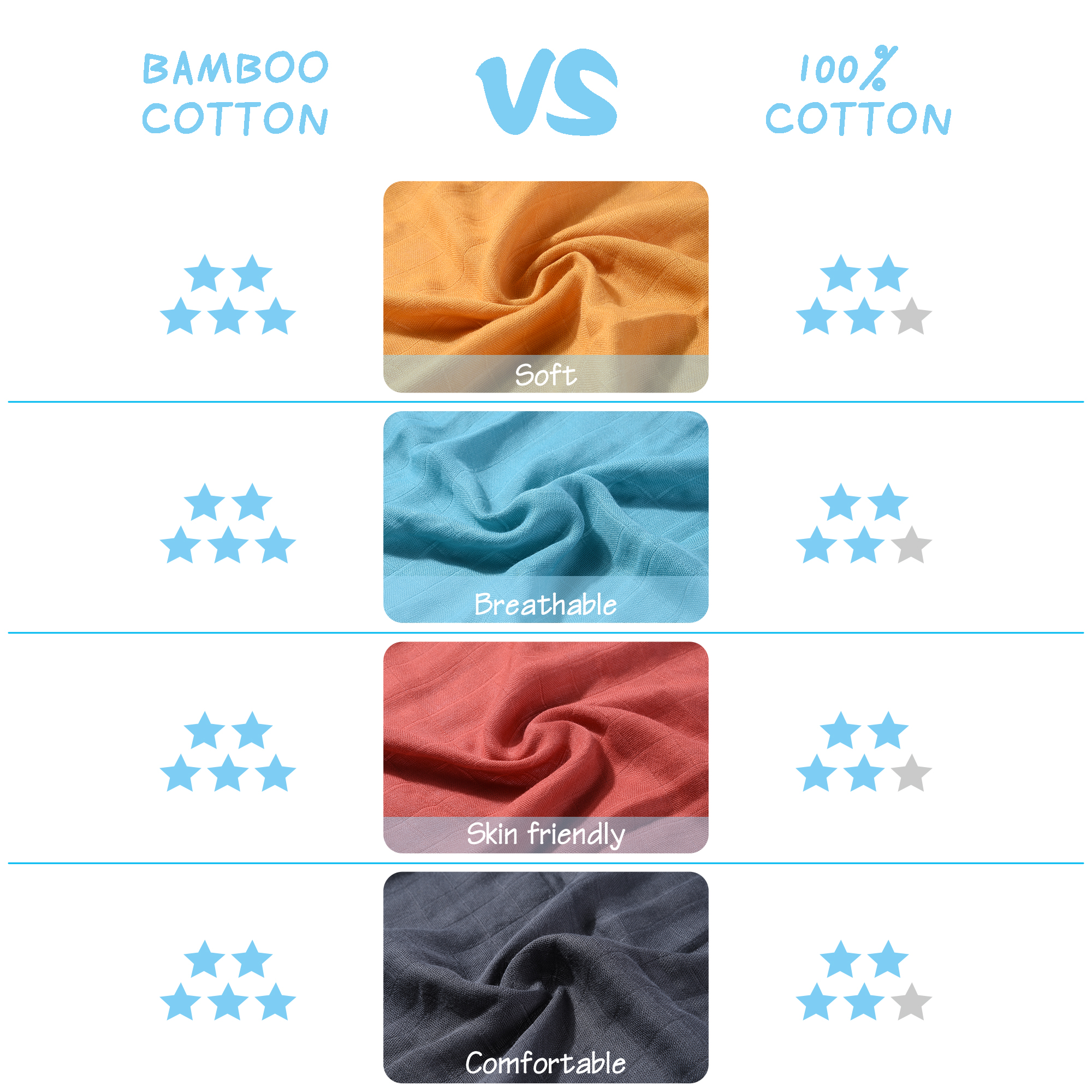 | Material | 70% bamboo, 30% cotton |
