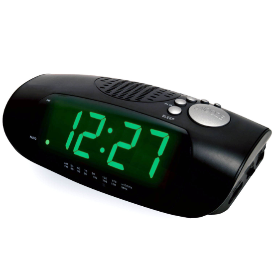 - AM/FM alarm clock radio.
