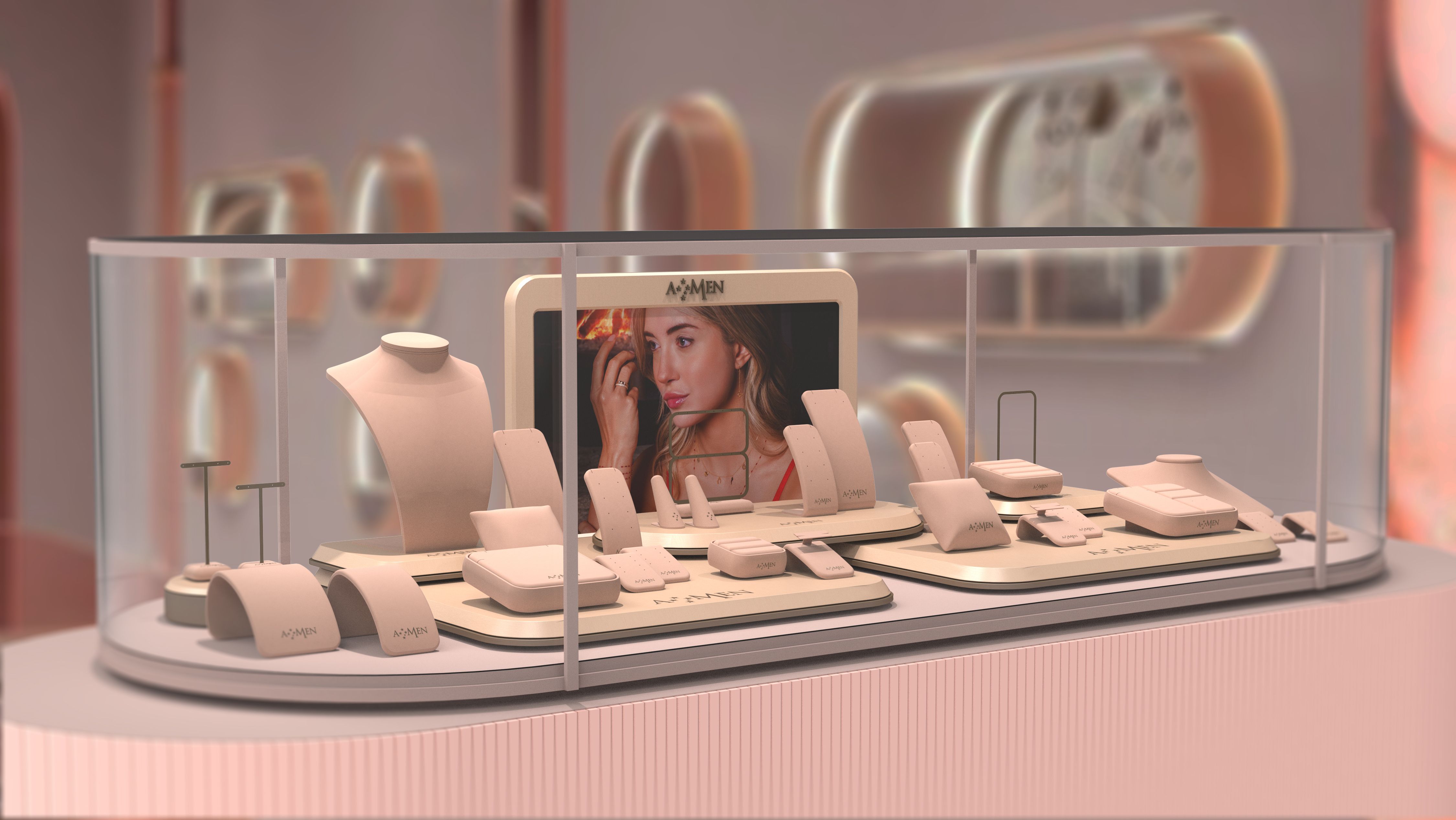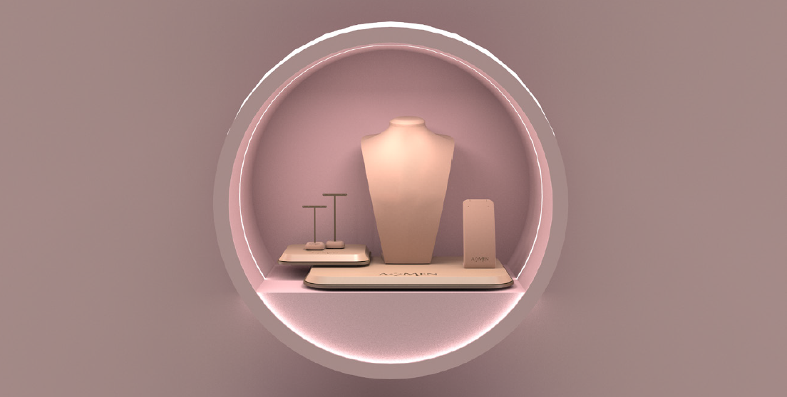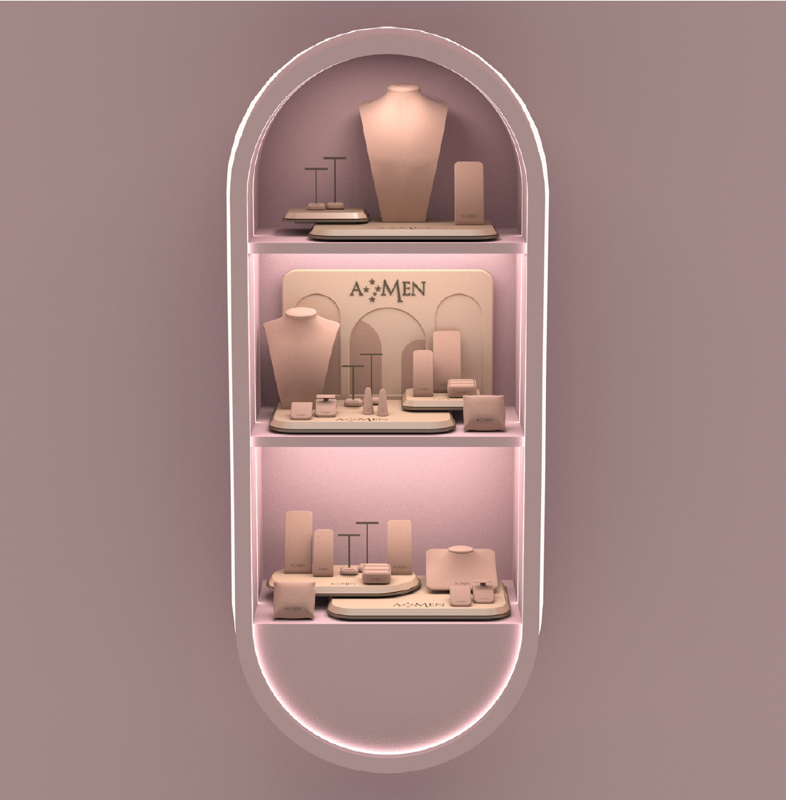 A new shop concept was developed for the Italian brand Amen, with a modern design combining fine leatherette, microfibre and lacquered profiles for an elegant and dynamic display.