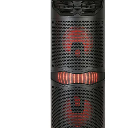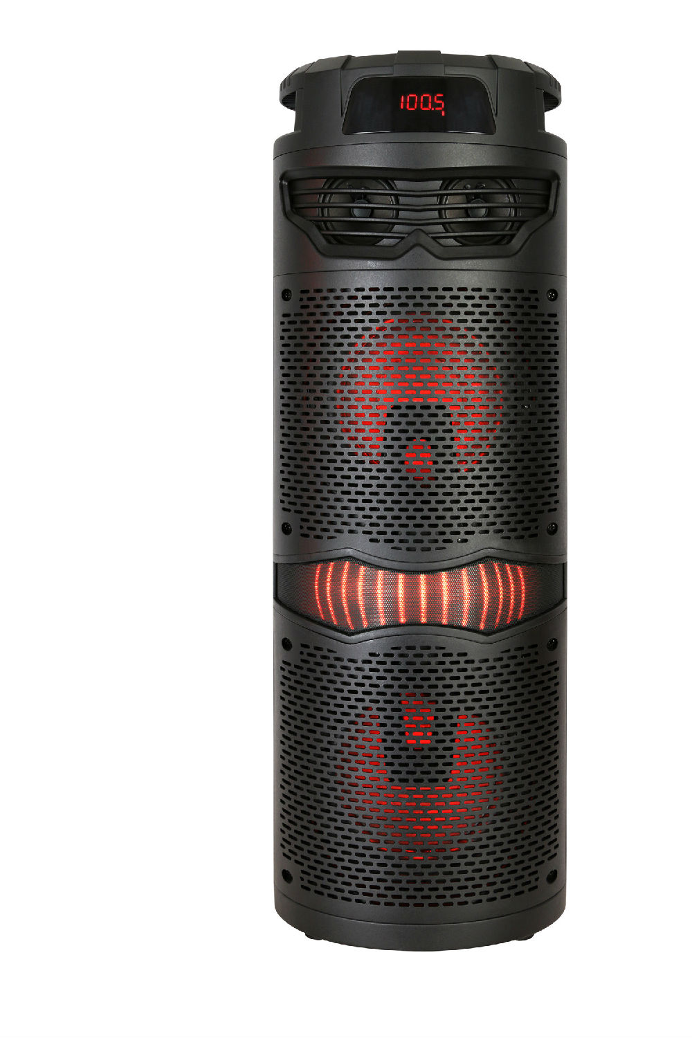 APP smart control, Bluetooth Player,Recharge battery,USB/FM, LED Display, Aux in, Karaoke,Power bank out 5V1A App operate to music play Portable design with 7.4V 2000mAh recharge lithium battery bluetooth player USB port for playing USB and power bank output(5V,1A) Digital karaoke input(not include microphone) 2.1inch sound system LED display light bright change/colour change/profiles light ON/OFF music EQ Music bass treble microphone EQ Microphone DSP Prevent howling pitch shifter volce change Revber Delay echo Multi-purposes fits either indoor or outdoor Woofer: 6.5" Tweeter Unit 4X 2.5" Power 40W Dimensions (MM) 230 x 230 x620