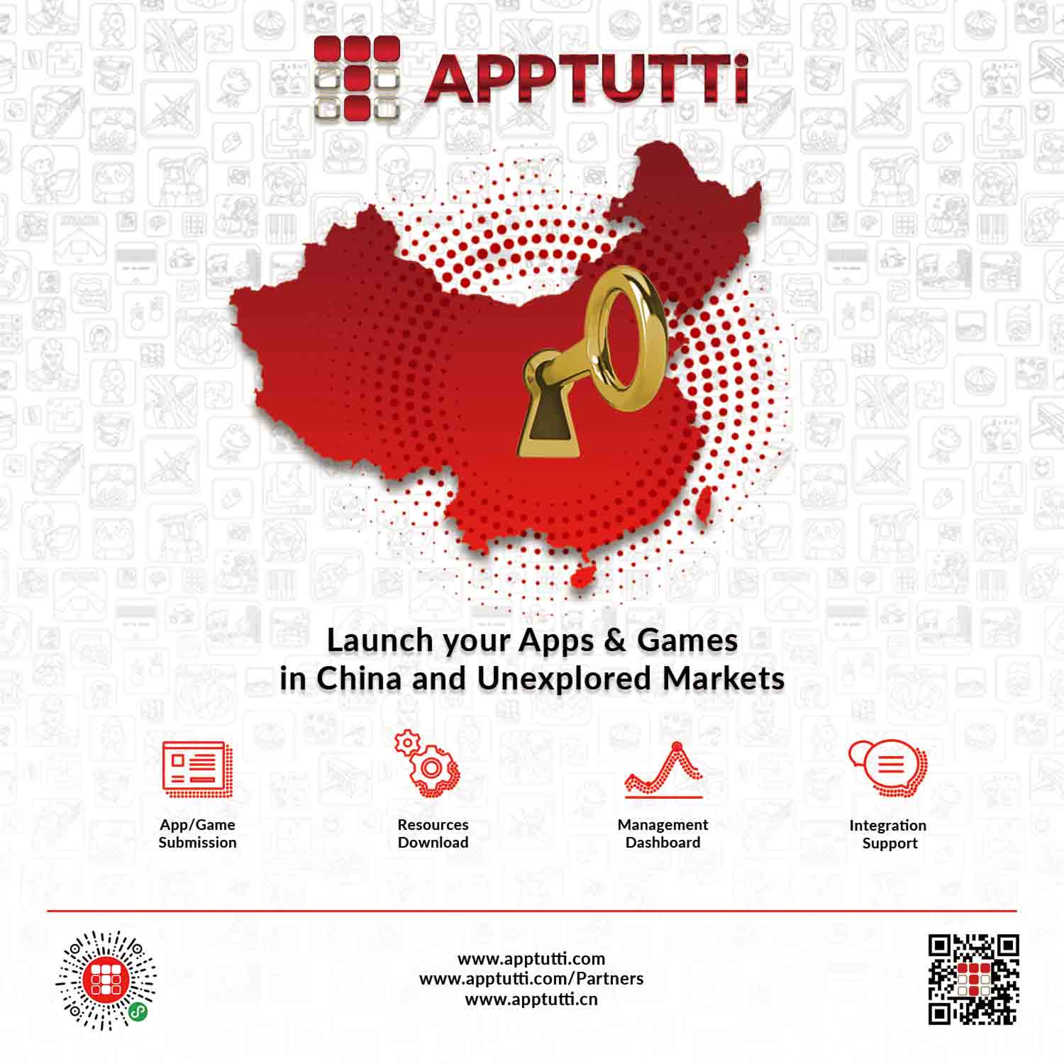 APPTUTTi is the quickest and most direct gateway to launch your apps or games into China and Unexplored Markets. You will be able to reach out more than 1,000,000,000 mobile devices in China and covering the top stores, potentially extended to those Unexplored Markets.
