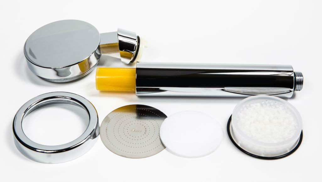 The aroma Vitamin C filter removes 98% of residual chlorine in tap water so that you can use clean water to shower your skin and hair.