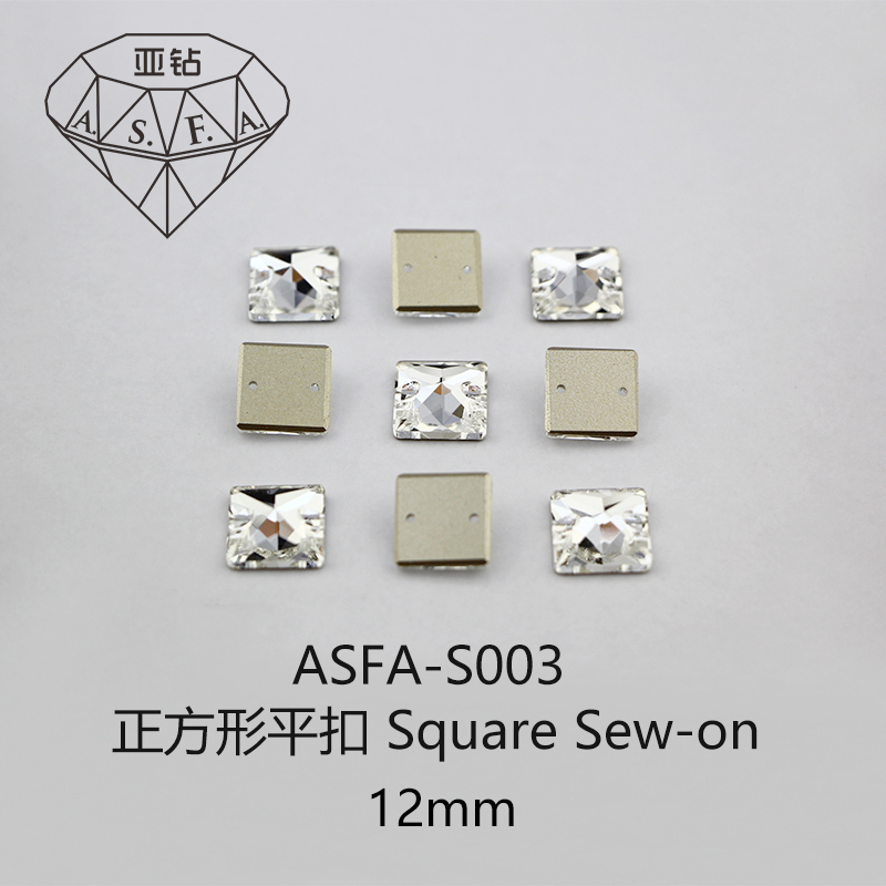 ASFA-S003 12mm Square Sew-on Flatback Rhinestones Wholesale Bling Charms