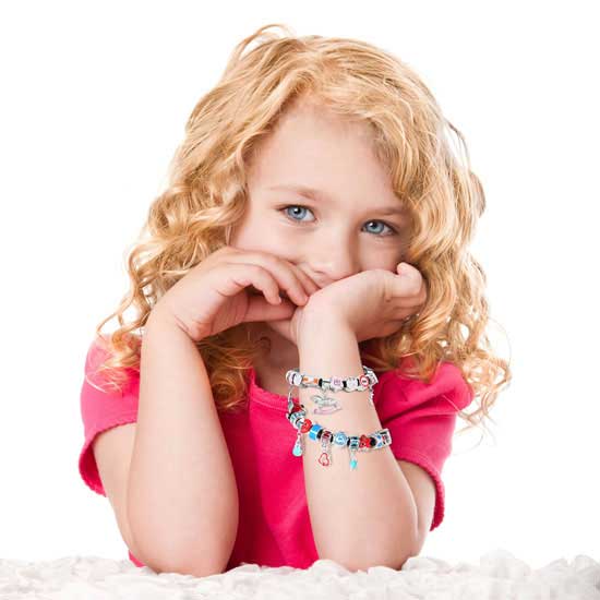 Highlighted here is a bracelet that is designed for kids. The delicate charms add a lovely touch to the bracelet. This kids' bracelet is easy to mix and match.