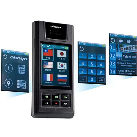 Okayo's latest and powerful Multimedia Guide AT-500 is available now! 2.8" touch-screen panel eases visitors' tour experiences. Inbuilt infrared triggering gives the fair organizer another option to show exhibits. Simple but analytic data information available for fast and efficient visitor analysis. Multimedia Guide AT-500 is more than an audio player!