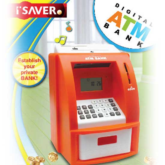 This is an ATM coin bank in attractive colors for an eye-catching look. It comes with a digital display for easy reading. This coin bank can determine how much money you still need to reach your saving target.