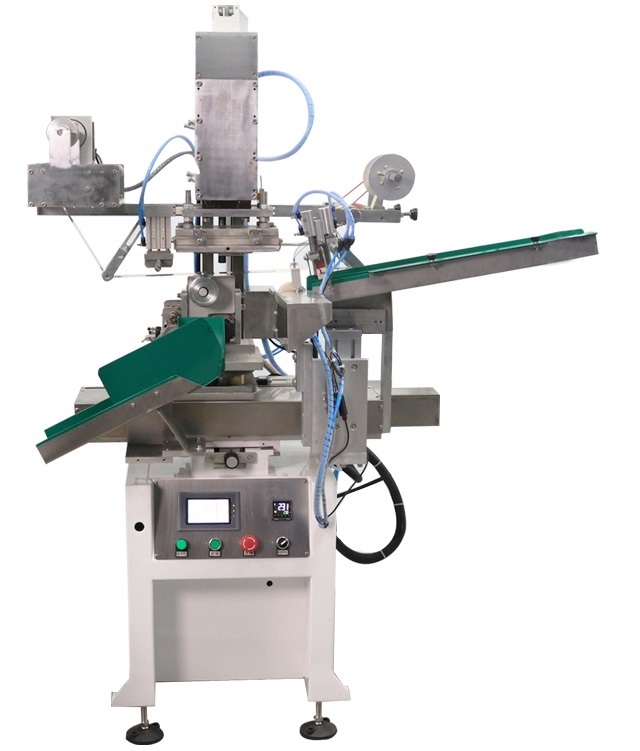 PZD-102HSS Hot Stamping Machine (Cone Shape Version) is specially designed for cone shape (and round shape) container. The machine applies 3 servo motors to achieve cone shape hot stamping process.
