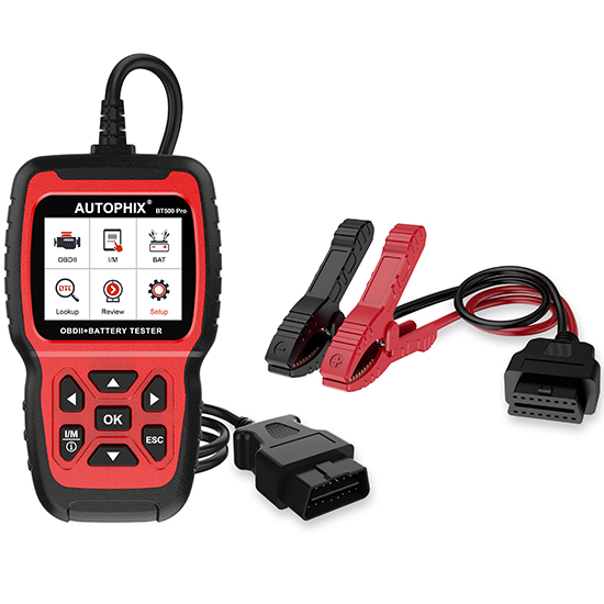 AUTOPHIX BT 500 Pro is a battery tester and OBD II scanner,it can test 12V & 24V Lead-acid and Lithium batteries from 100CCA to 2000CCA. OBD ll Functions:Works on most after 1996 and newer OBD ll compliant US, European and Asian vehicles