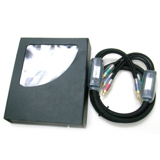This is a set of component cable that can transmit audio and video signals at a high speed and quality. The cable contains three RCA connectors include blue and green colors that represent video and stereo connection. The cable is coated with durable material which is wear-resisting.