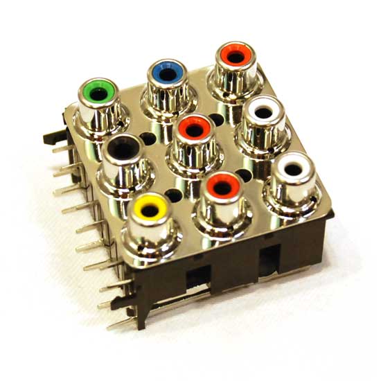 This AV pin jack board comes in a classical 9-jack design for the highest functionality. The extra-long lifespan allows this board to be used for more than 5,000 times. This jack board works perfectly from -40°C to 70°C.