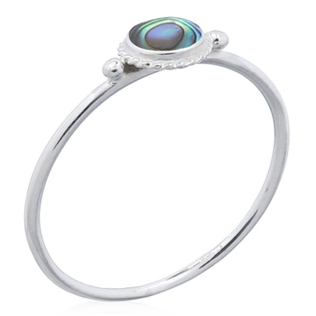 Abalone Shell Round Silver Bordered Round Ring
