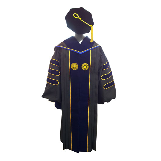 This academic gown comes with a dark gray and dark blue finish. It is nicely decorated with yellow trim for a smart look. Attend a graduation ceremony with confidence and charm in this academic gown.