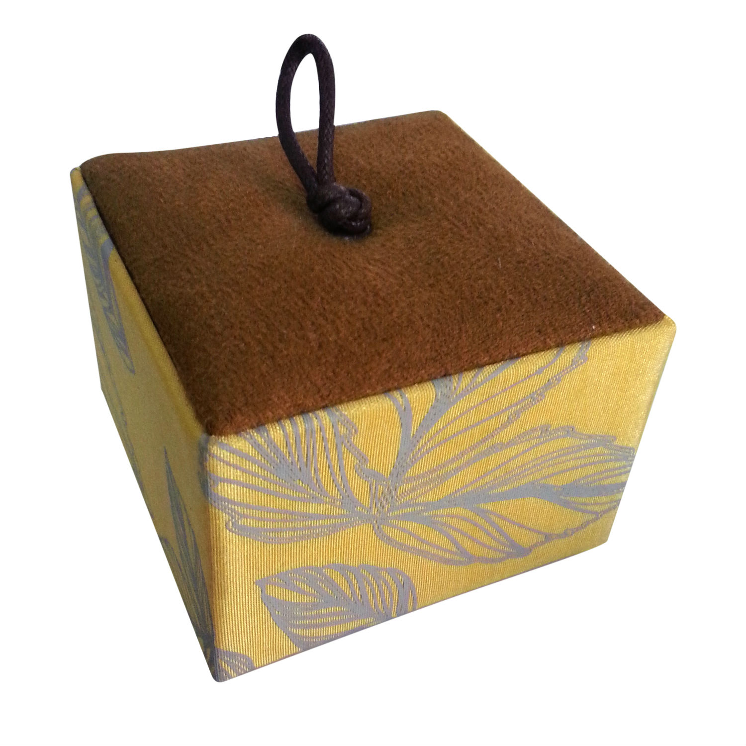 Keep your favorite items in this lovely decorated accessory box. The yellow box comes with a matching lid in brown. With fetching floral pattern on the body, this box is constructed of silk for a delicate look. This accessory box makes an ideal choice for storing small items and seasonal items.