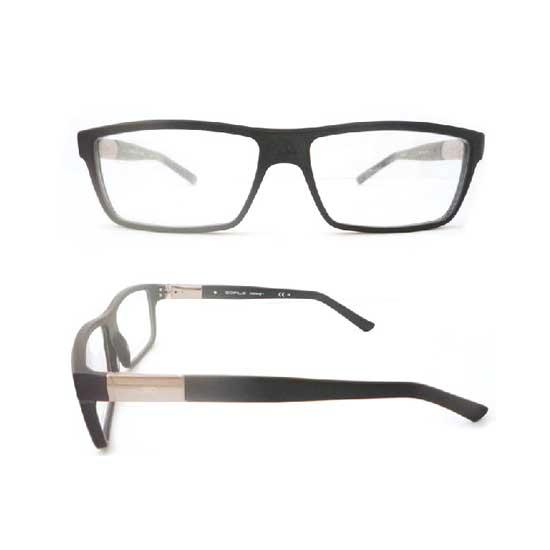 This optical frame with rectangular full rims features a black-toned design with silver-hued bands on the temples. It is constructed from acetate for years of performance. This stylish optical frame is suitable for various occasions.