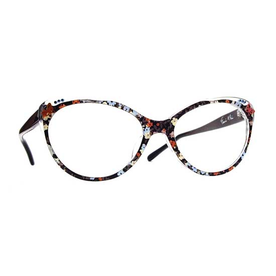 This is a pair of fashionable full-rimmed glasses whose frame is made of acetate and fabric with high durability. The ribbon and pearl embellishment with floral prints on the surface lend a stylish touch. The nose bridge pads ensure extra comfort for long-time wearing.