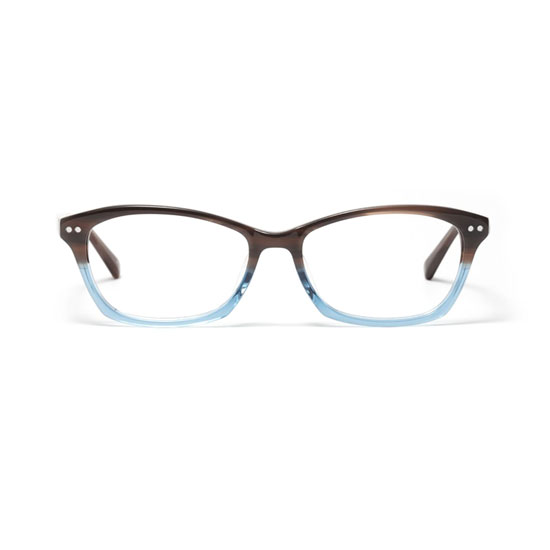 This pair of glasses is made of custom cellulose acetate. It features five barrel hinges and Teflon coated screws for durability. The two-toned design showcases a touch of uniqueness.