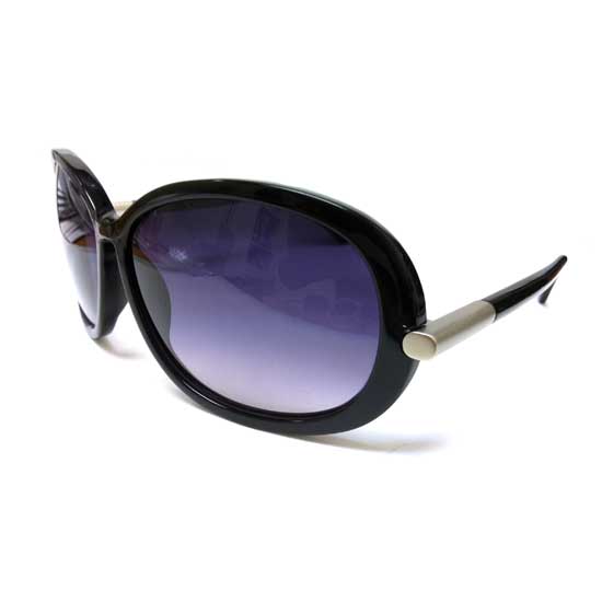 These fashionable ladies' sunglasses protect your eyes with style in any season. The combination of the bluish tinted lens and the black frame is smart and modern. The bold metallic hinge detail surprises wearers.
