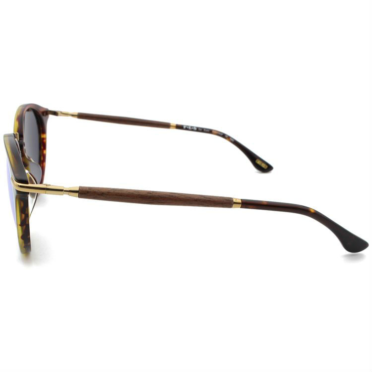 This pair of fashion sunglasses is just perfect to round off your hippy-inspired look. The classy design blends tortoiseshell and wood patterns along the rims and temples and curved ends for added appeal. Molded with acetate, a sought-after material, this glasses ensures sturdiness for lasting use.