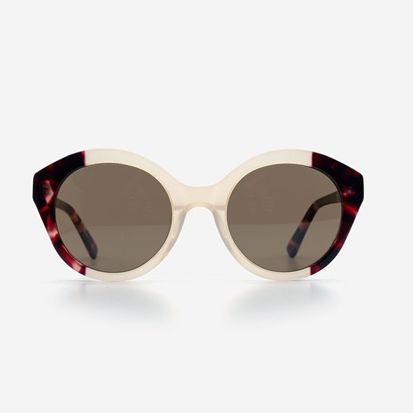 This model is combine color. The outer surface of the bold silhouette is realised in rich tortoise shell acetate with a contrasting milky color frame. Fitted with TR18 lenses which offer anti-glare and UV400 protection. The frame is finished with sculpted nose pads and temples for a comfortable fit.The quality has been paid attention to as whole.