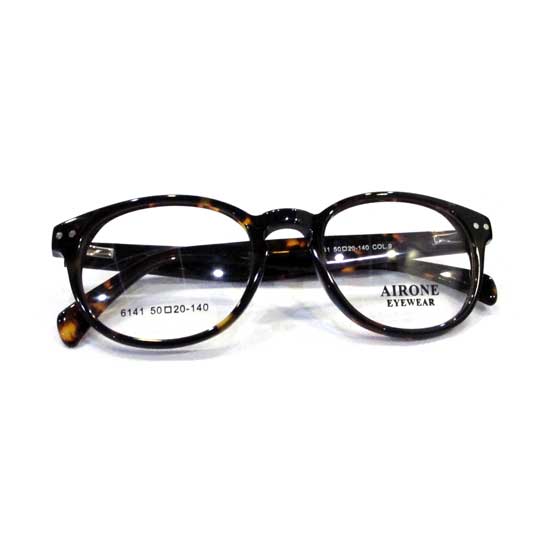 Displayed is an optical frame that comes with oval rims. Featuring a black color, this frame has tortoise hints for a fashionable touch. This frame is made of acetate for a light weight and durability.