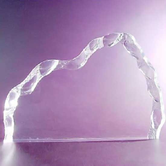 This is an acrylic award that comes in an artistic design. The rough edge reflects light to create a shiny effect. This award feels solid and looks of high-end.