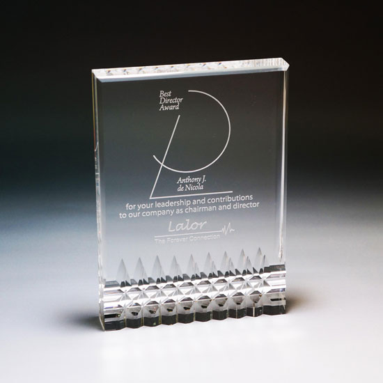 This award plaque comes in the shape of a rectangular. With a transparent design, this award allows you to see the engraved achievements clearly. This award is made of quality material and is long lasting.