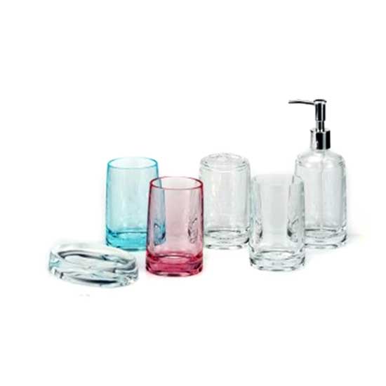 This acrylic bathroom series includes a tumbler, soap dish, toothbrush holder and lotion bottle. They feature nice colored or colorless transparent designs. These items make decent choices for households and hotels.