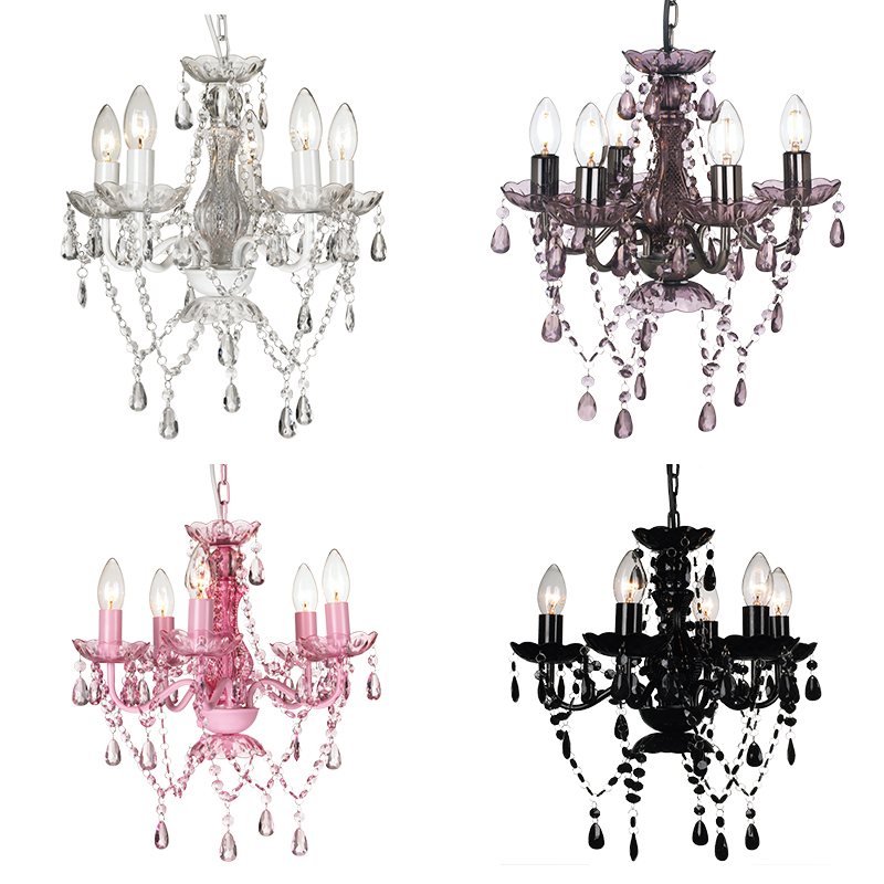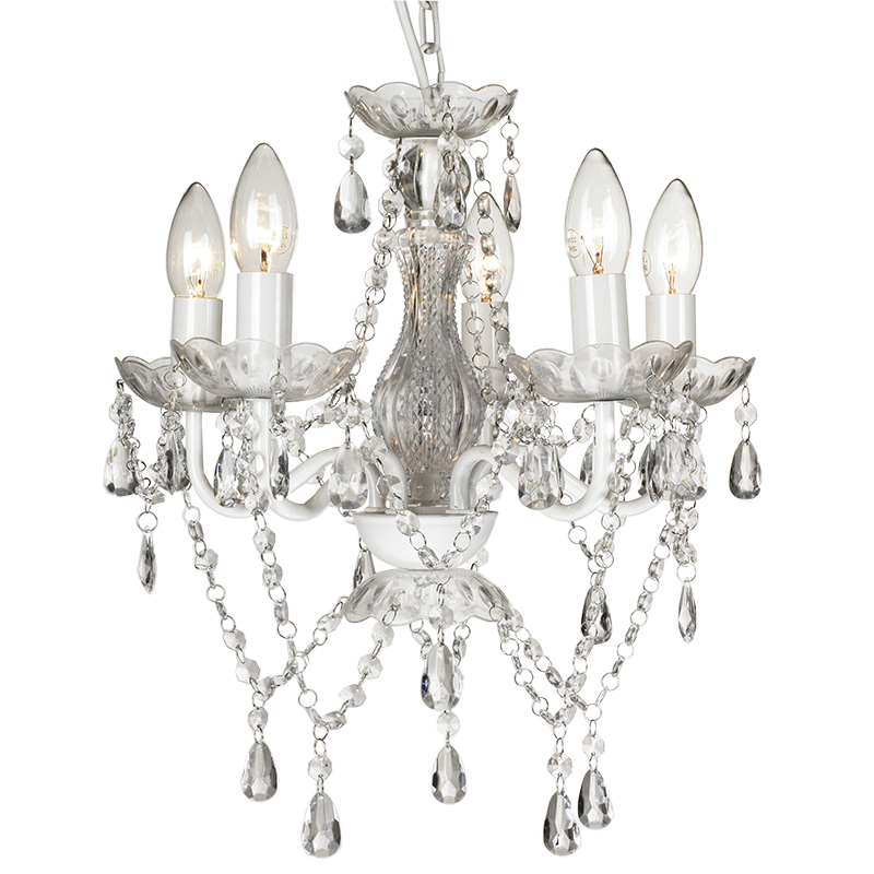 • 110-240V Chandelier with 5×E14 bulbs (Max.40W), Bulbs excluded, Painted Arms, Acrylic bead decoration,
