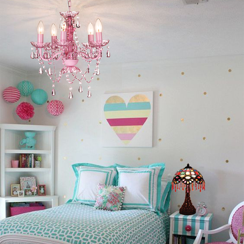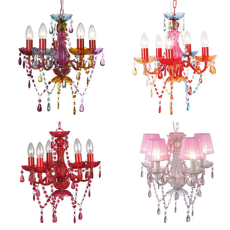 5 Way Acrylic Droplet Crystal Chandelier for Children Bedroom