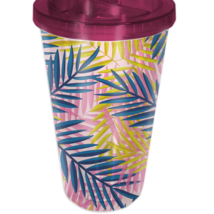 Start a healthy drinking habit with the help of this handy tumbler. This 16-ounce tumbler is durable and sturdy, which can keep your beverage fresh and secure on hand with lid. A straw is included for mess-free drinking. The vivid leaf print is sure to brighten up your day.