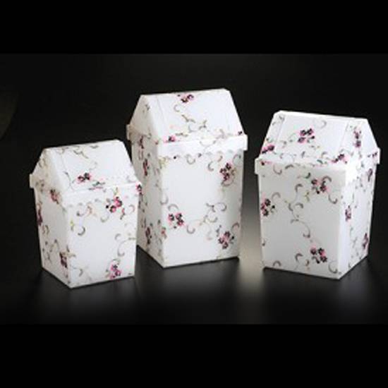 These are garbage bins or rubbish bins with an attractive floral pattern. These waste holders are made of acrylic and can also be a decoration for homes.