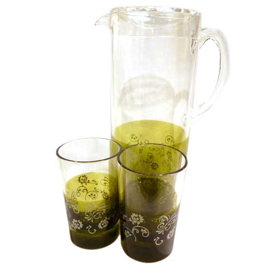 The elegant tableware set is completed by a water jar and two cups. The artsy floral patterns echo with the youthful green color to bring out a harmonious sense. The quality material gives each piece of tableware a dependable structure for long-time use. Complete your tableware collection with this beautiful jar-and-cup set.