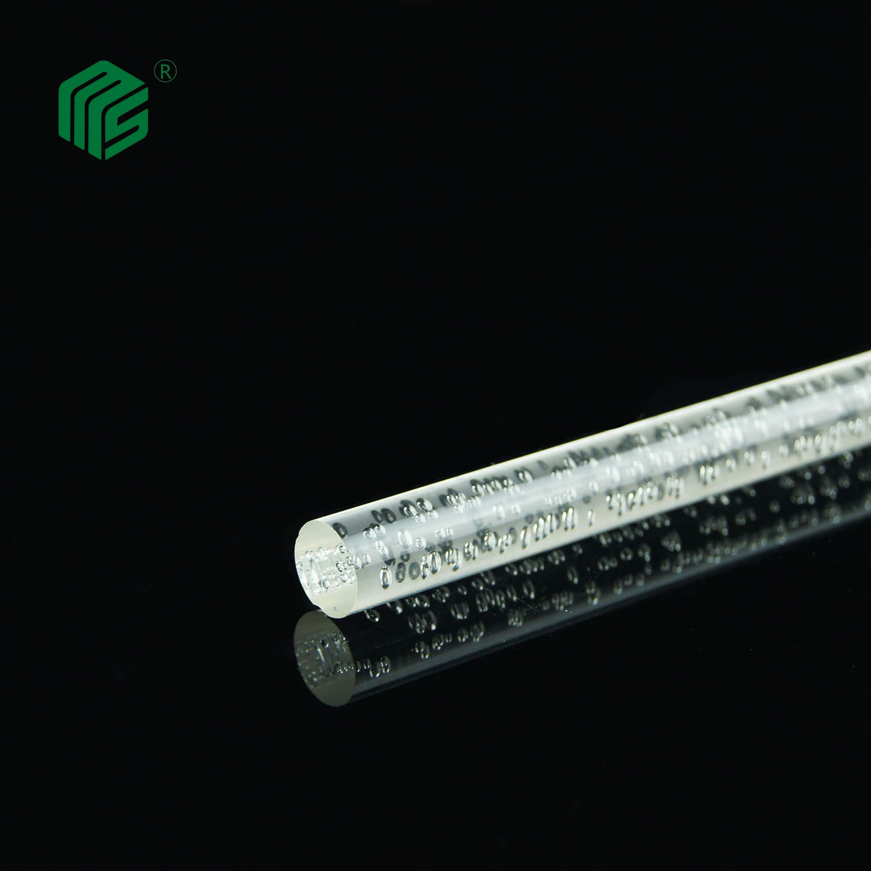 Mingshi produce a wide variety of extrusion rods. It includes solid rods, bubble rods, line rods, square rods, irregular rods. Through a complete heat treatment processes, we reduce stress and enhance processing stability, the product has good tensile strength. In order to ensure the high level of transparency, we used high light transmittance raw materials, strictly controlled production process, to ensure the purity of the material, while also greatly enhance the products quality. Currently, rods are increasingly used in the lighting, building materials, house decoration, advertising and other different functions.
