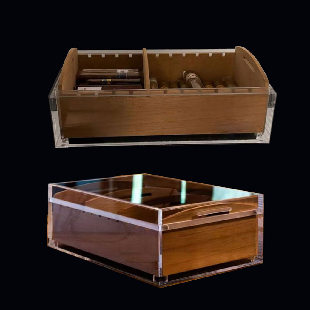 Material:CLEAR Acrylic Cigar Humidors Holds up to 50 Cigars, with cedar tray 30*20*12.5cm