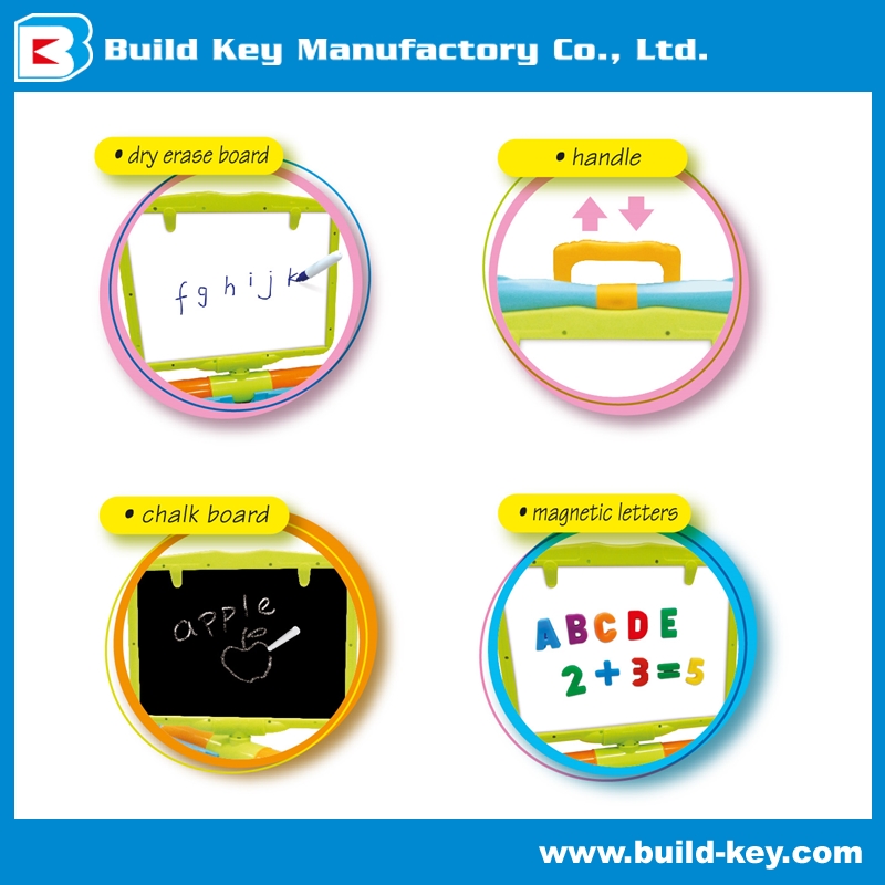 Features: ABS carrycase, detachable & 360 twisted black board / white board, 36 Magnetic Letters (1.25"), 27 Magnetic Numbers & Signs, 4 whiteboard pens, 3 chalks, 10 A4 paper and 1 double sided eraser.