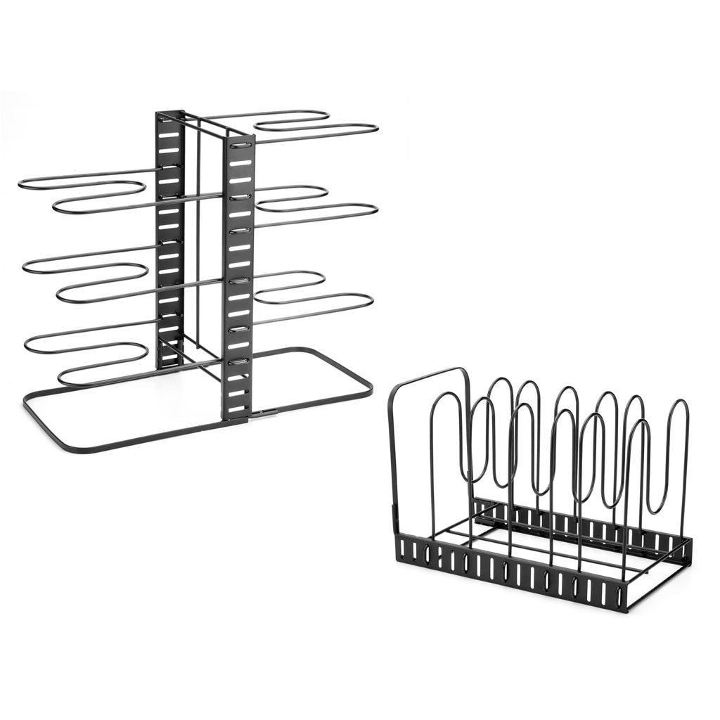 Features adjustable dividers, allowing you to easily modify the space to accommodate lids, pots, and pans of most sizes