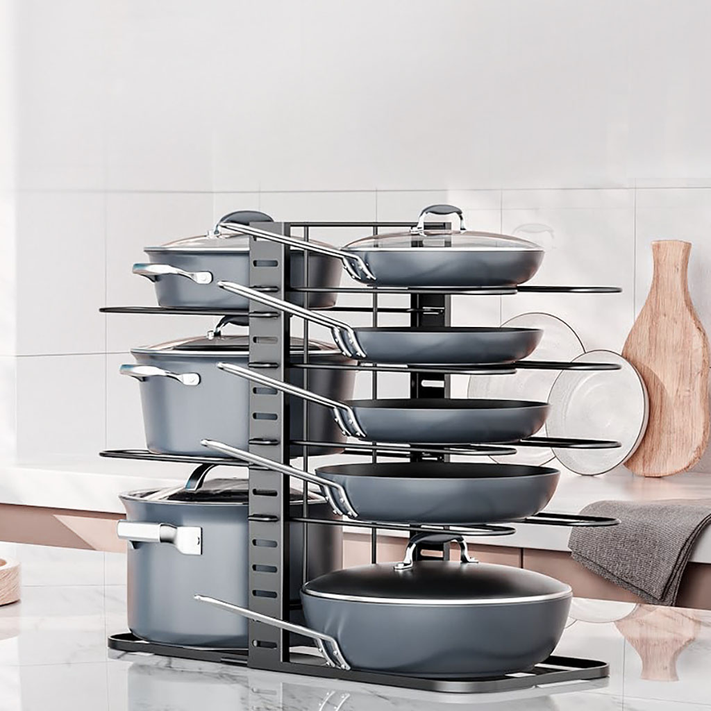 Adjustable 8-Tier Pots & Pans Organizer includes the following features :