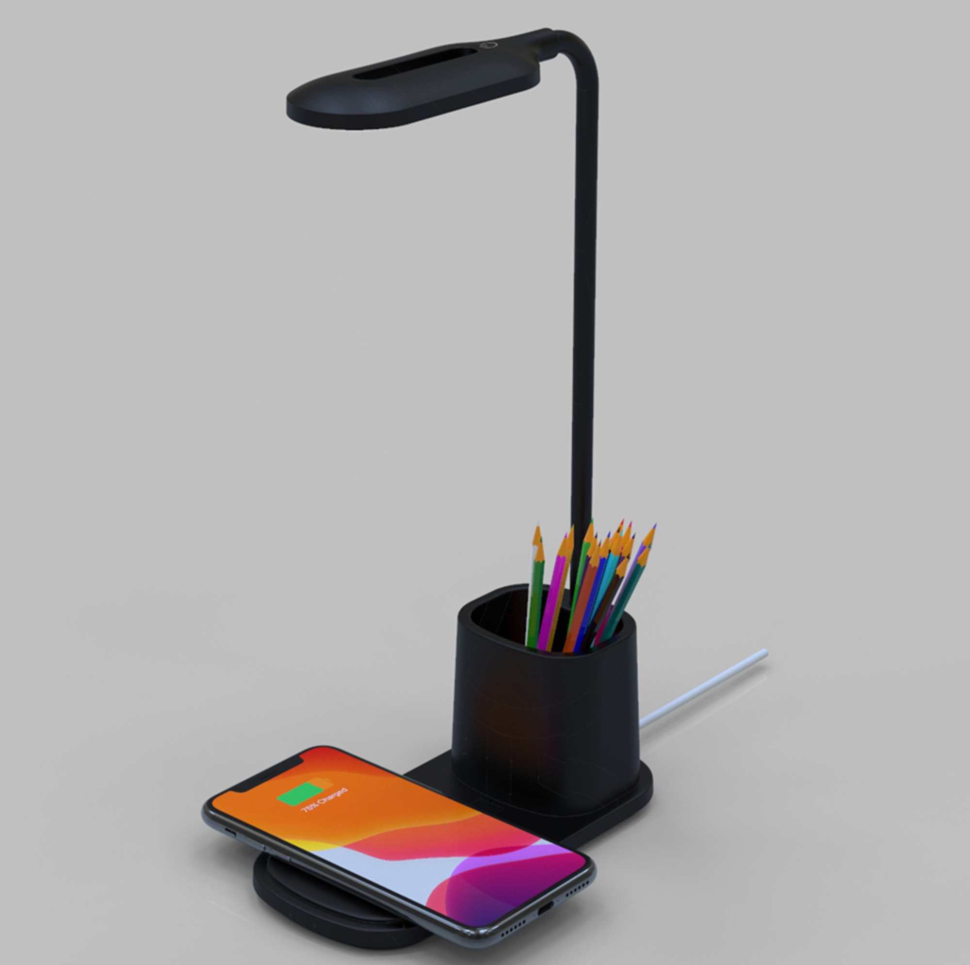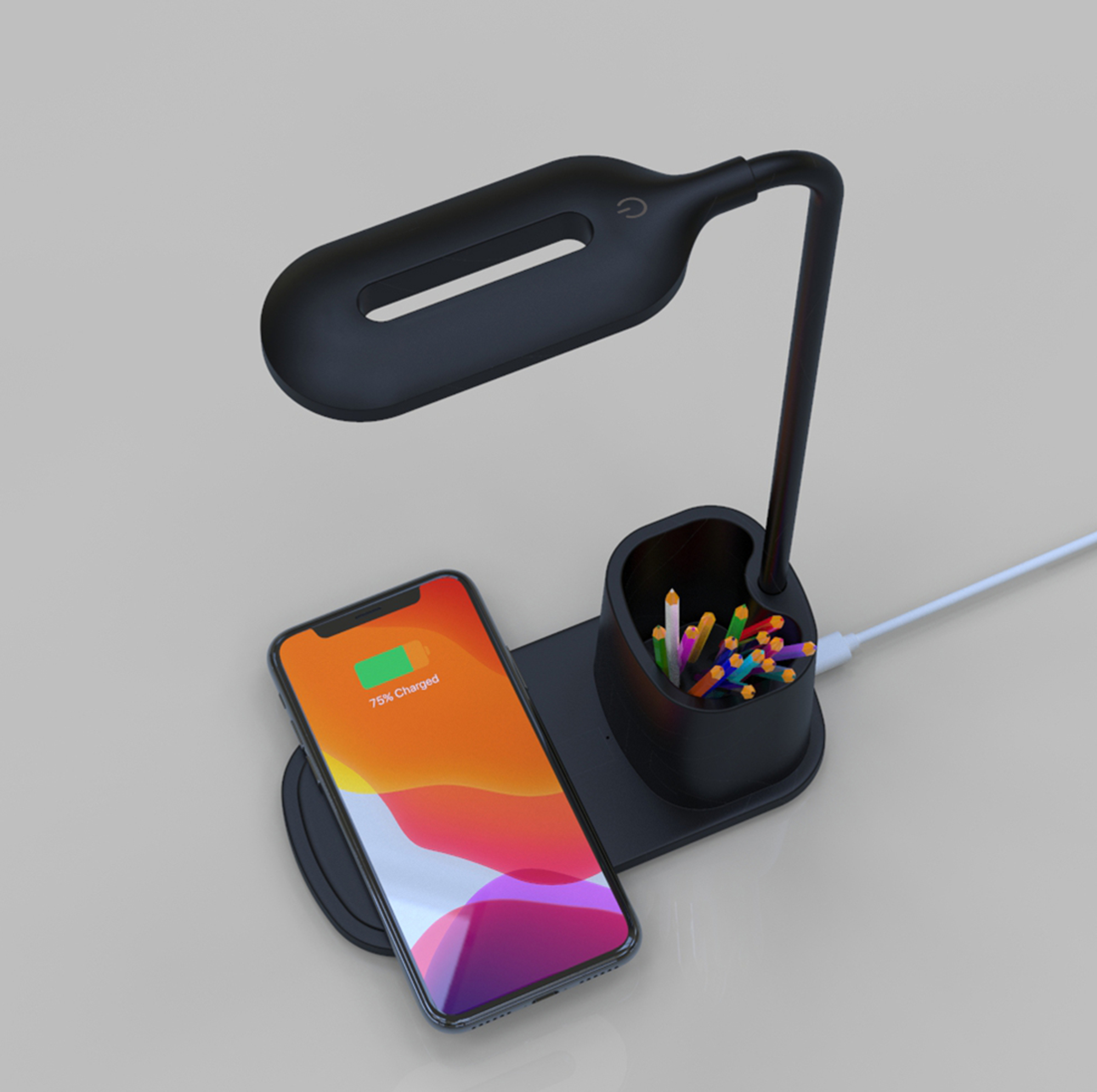 Adjustable Desktop Wireless Charging Lamp with Brush Pot Touch Control Adjustable Lamp Office, Reading, Study, Black