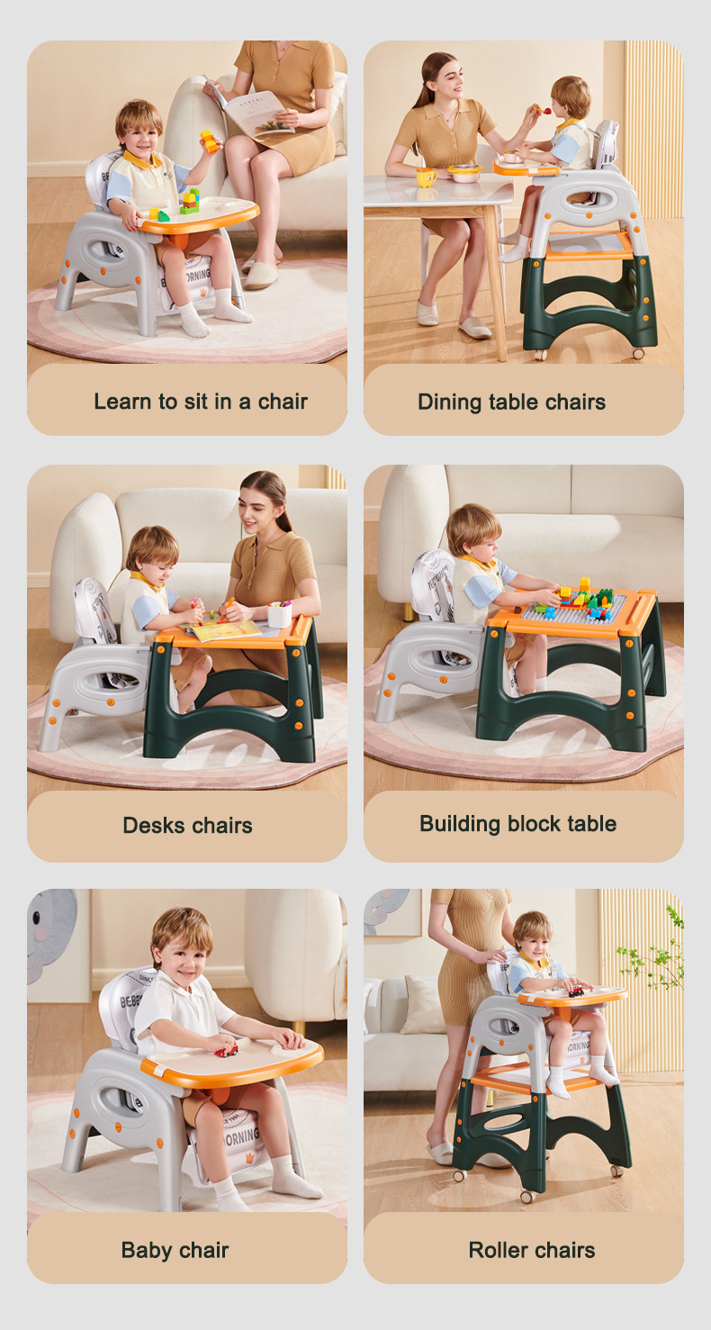 Adjustable Height Portable Multifunctional Foldable Baby Feeding High Chair Dining Table and Chair