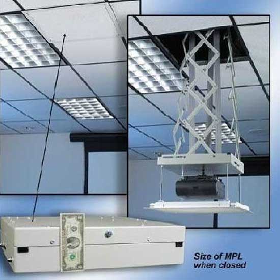 This adjustable universal projector mount fits most projector models in the market. The flexible extension arm offers easy mounting height adjustment. The projector can be hidden in the ceiling when it is not in use.