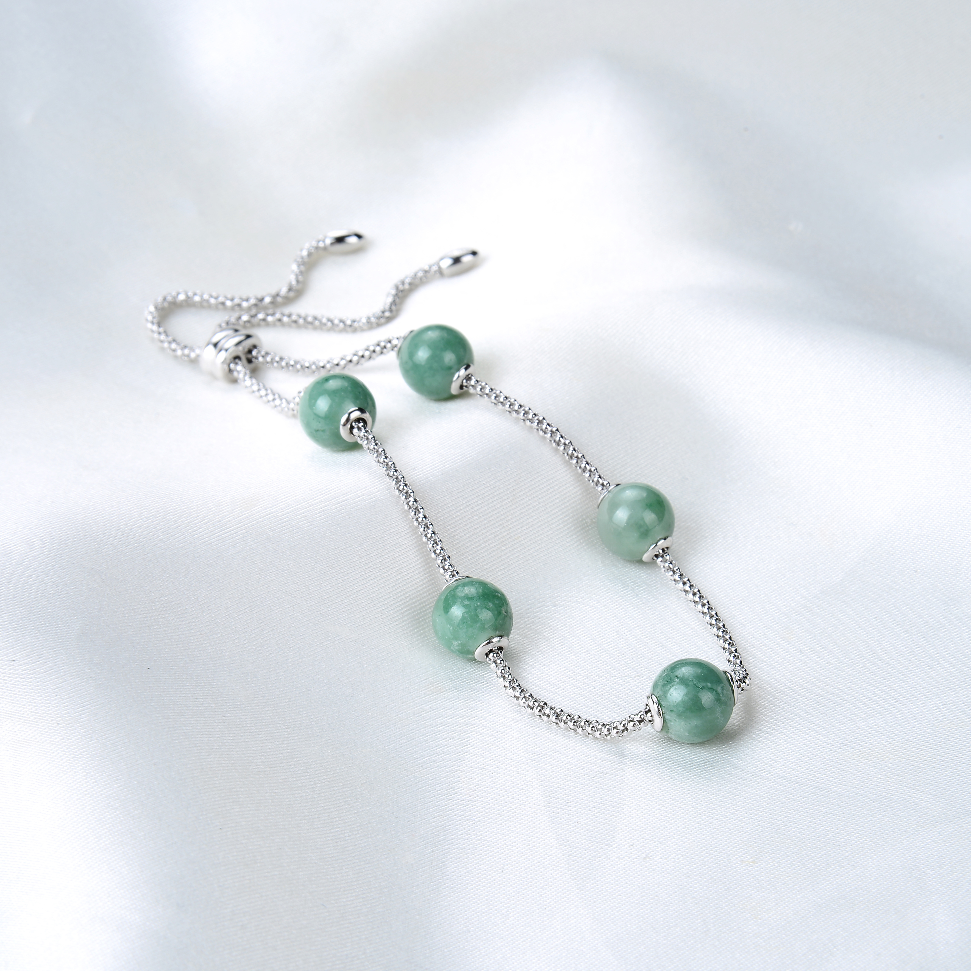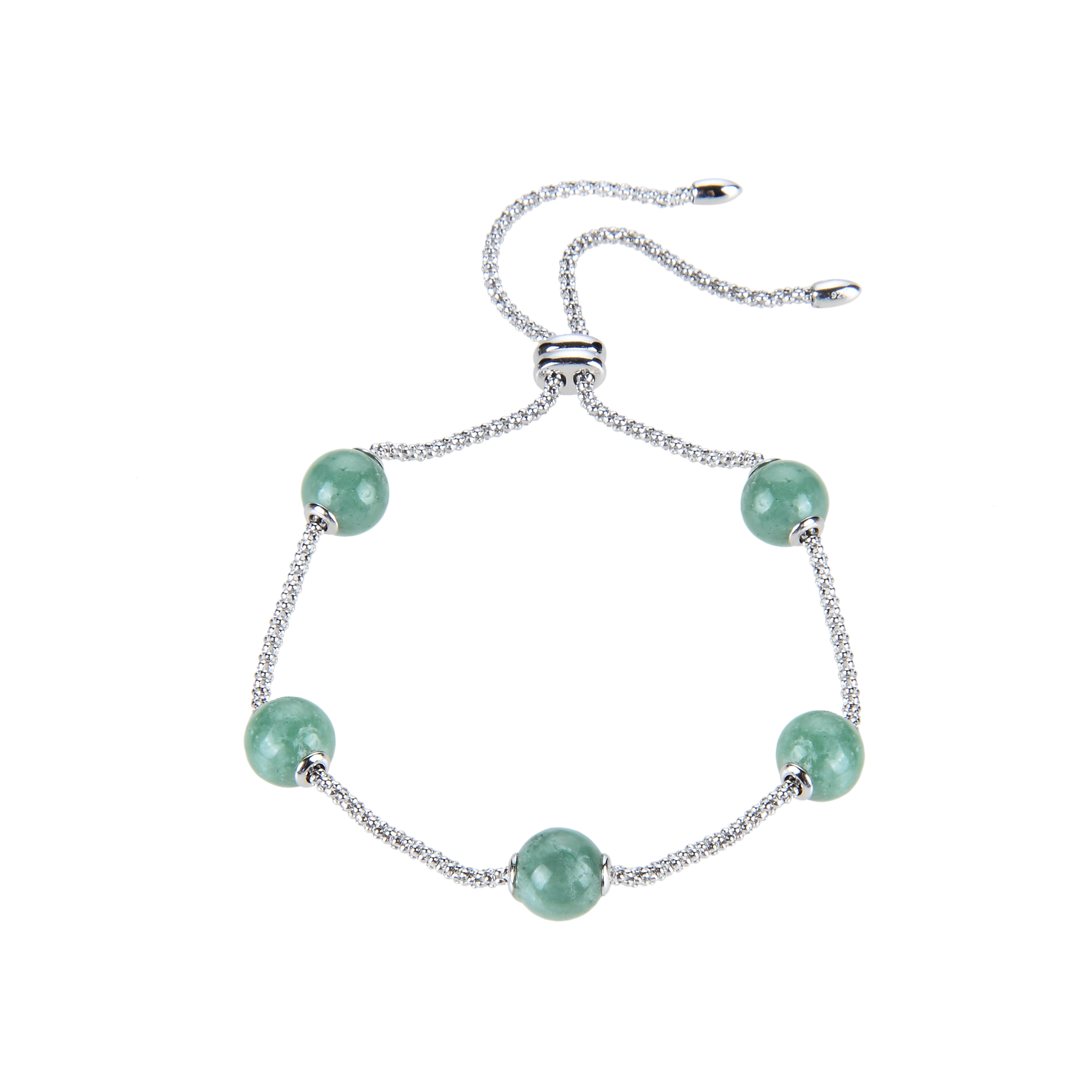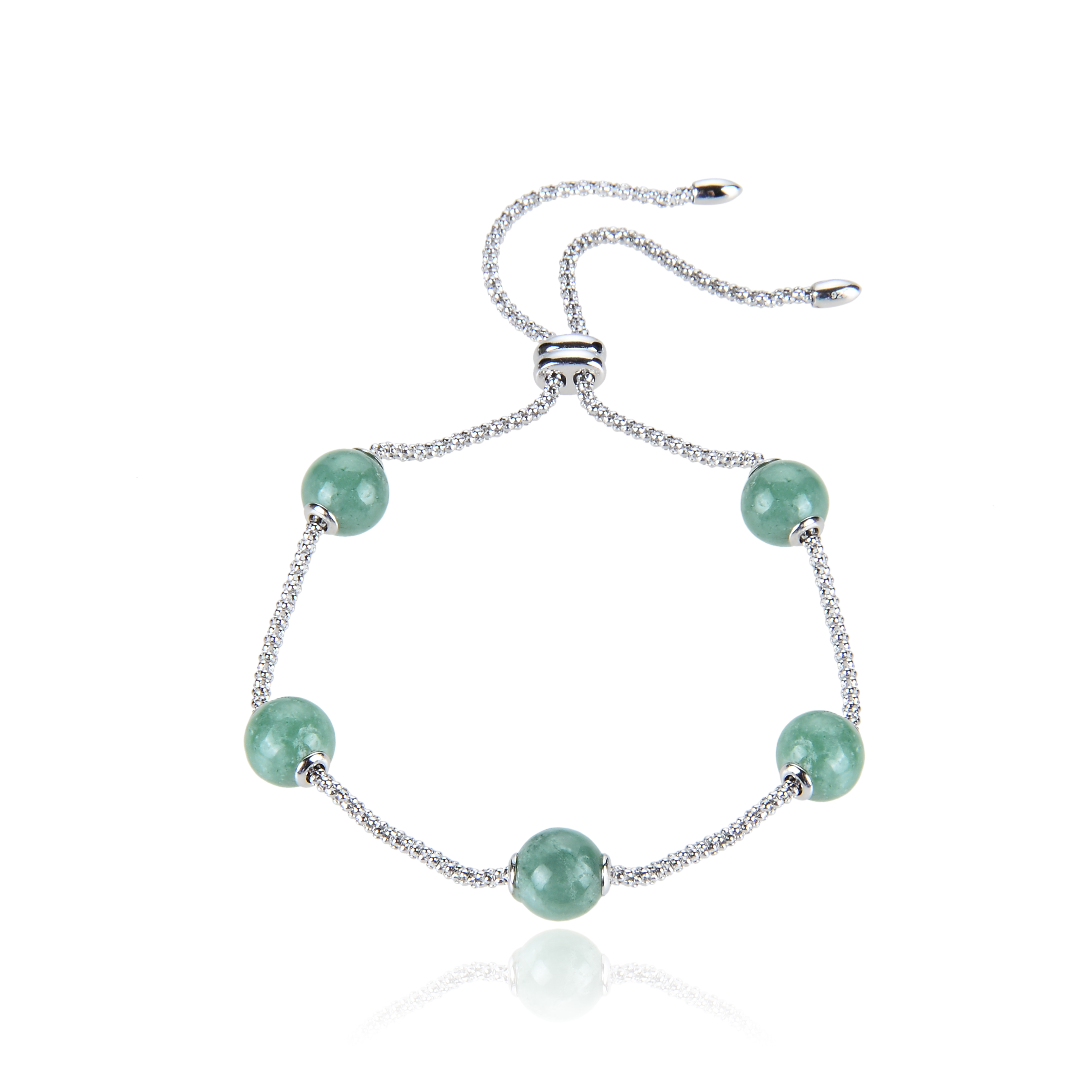 28cm adjustable chain bracelet with movable of 8mm round dyed genuine jade(5pc), all metal are 925 s/s in rhodium plated, free of nickle.