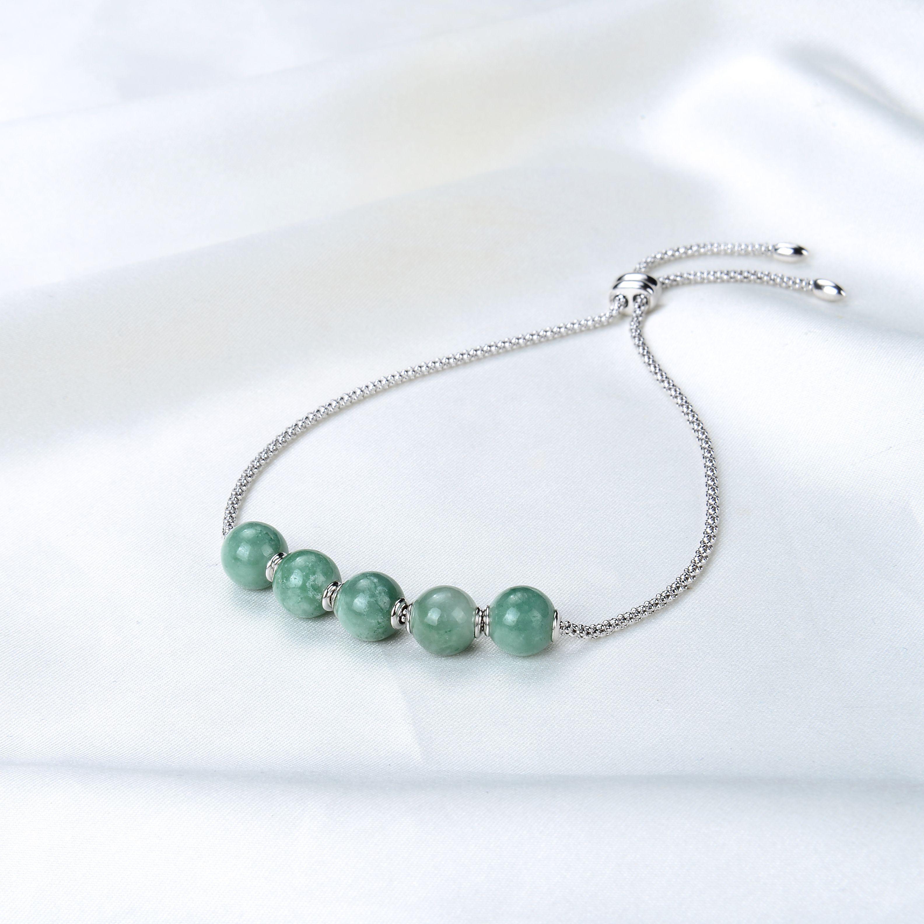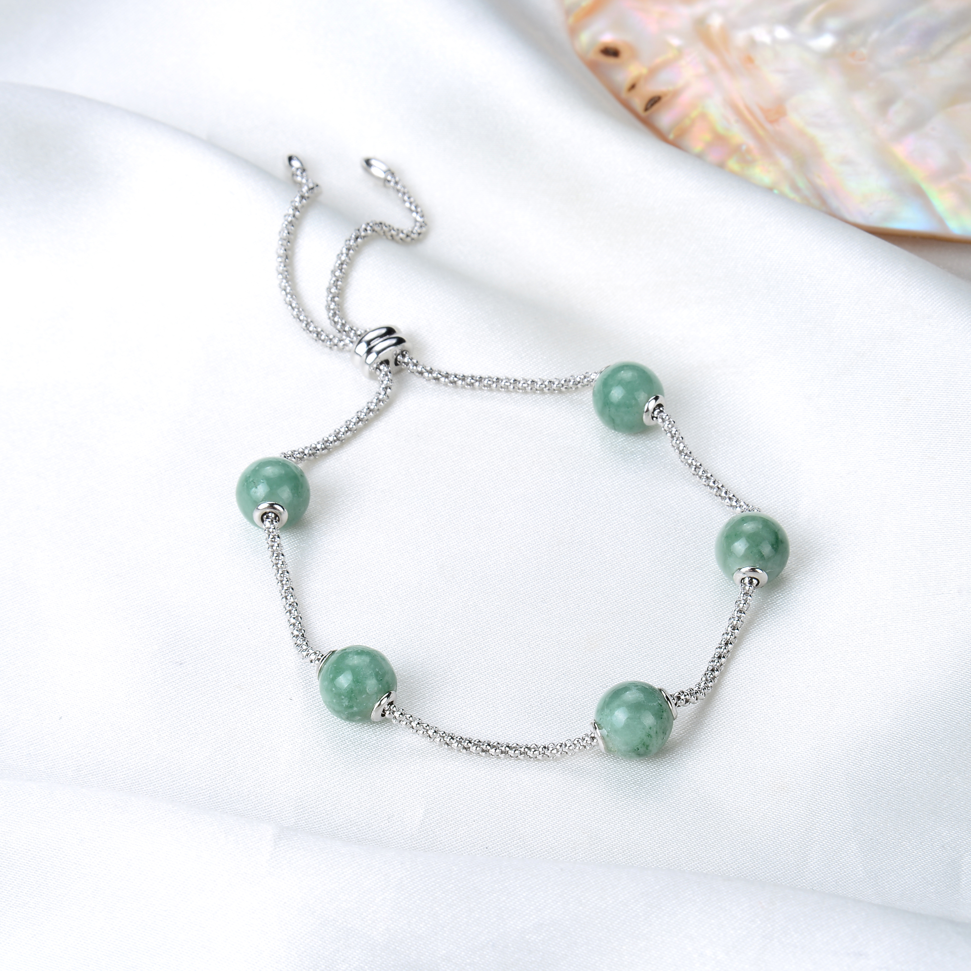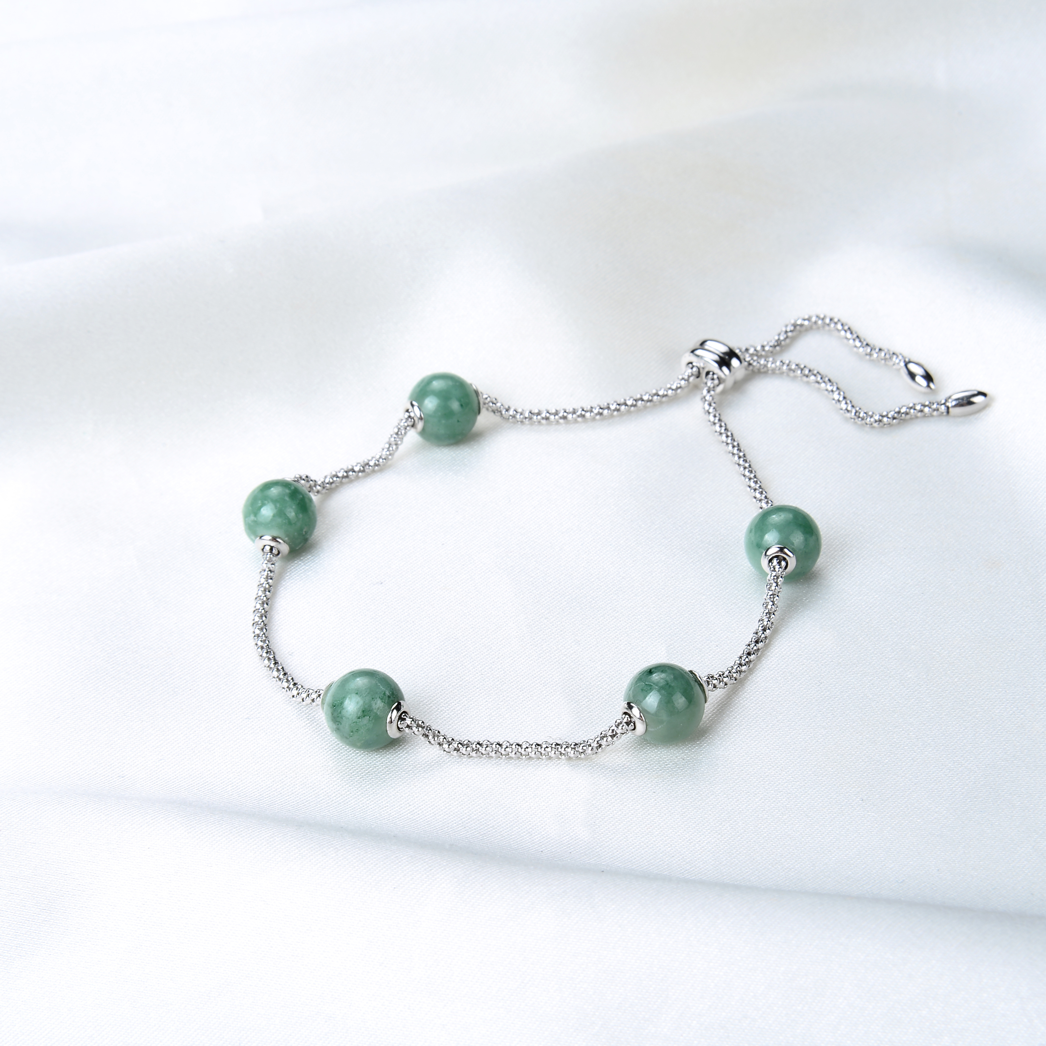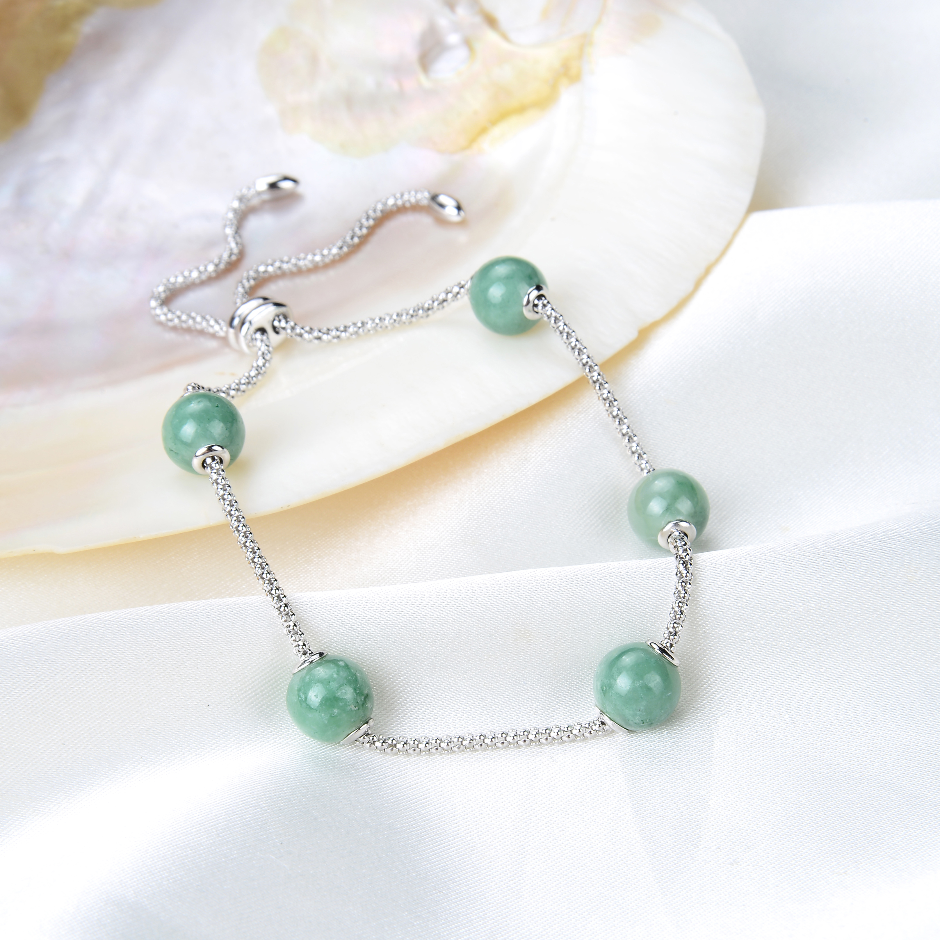 28cm adjustable chain bracelet with movable of 8mm round dyed genuine jade(5pc), all metal are 925 s/s in rhodium plated, free of nickle.