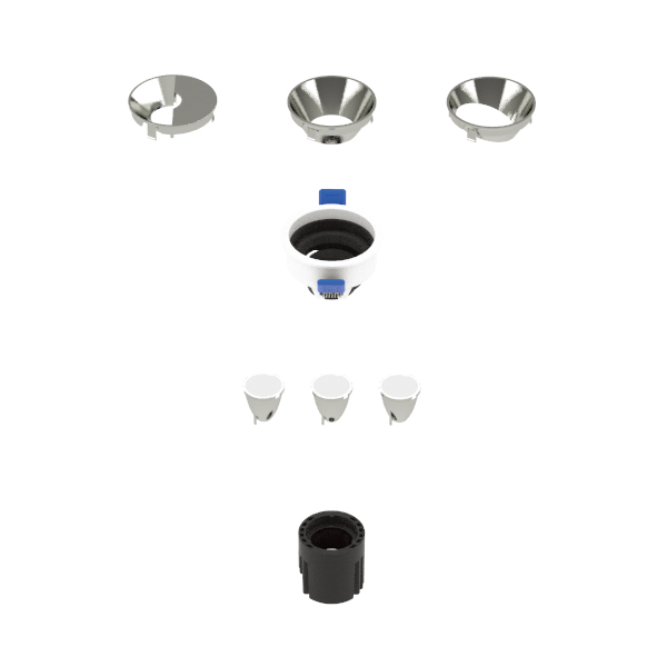 Many accessories allow to obtain from the same housing, the fixed, the adjustable and wall washer version.