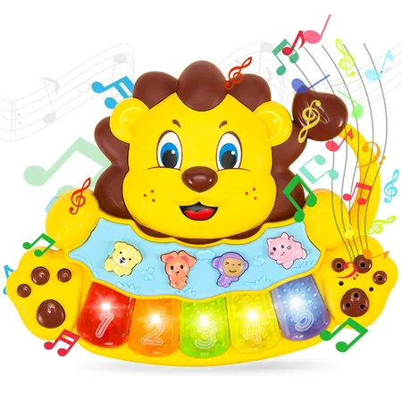 1.CUTE LION MINI PIANO - 5 piano keys light up in different bright colors when your child plays this baby toy; give your child this keyboard musical instrument for an early opportunity to learn and play simple musical tunes and games
