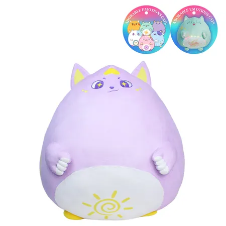 English:  These soft, round cat-like plush toys are more than just cuddly—they’re full of emotion and magic! Each one expresses one of 6 different moods—Heartbeat, Anger, Smug, Snore,Sad, and Thrilled—shown through charming embroidered faces and a matching emotiona.